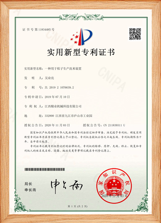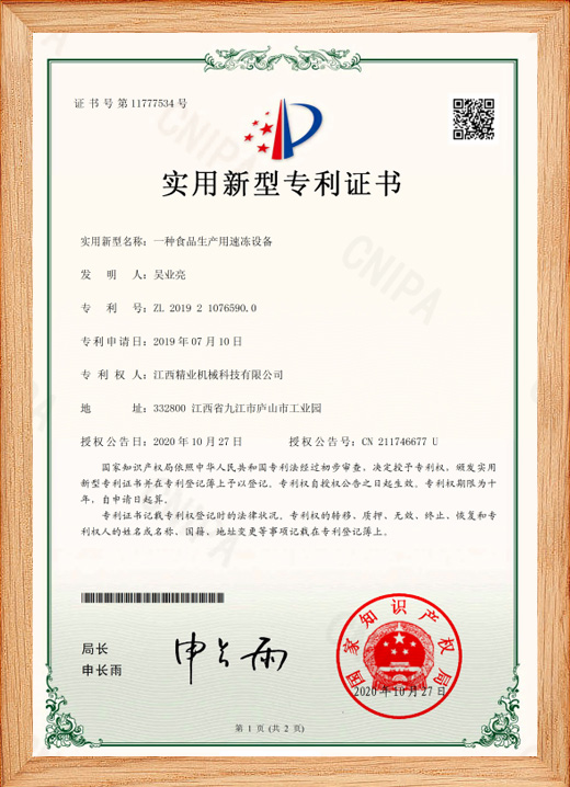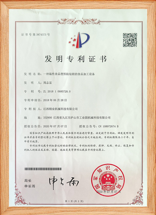 公司獲得多項(xiàng)食品加工生產(chǎn)設(shè)備制造專利。